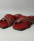 Add a bold statement to your footwear collection with the Ruby Glow Cross Strap Flats. Designed in a rich red tone, these stylish flats feature a modern square toe and elegant cross straps enhanced with delicate embellishment for a refined, eye-catching look.